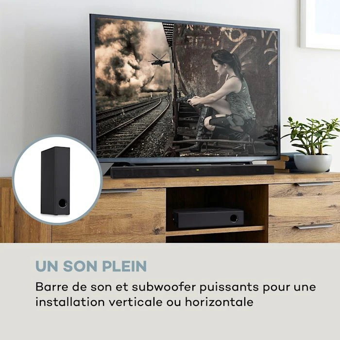 - Un son plein : puissante barre de son avec subwoofer puissant