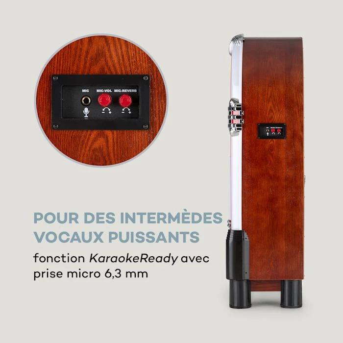- Performances vocales puissantes : fonction KaraokeReady avec prise micro 6,3 mm