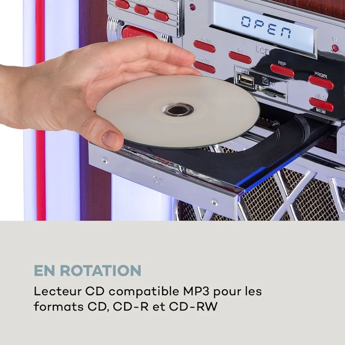 - En rotation : avec lecteur CD compatible MP3 et formats CD, CD-R et CD-RW