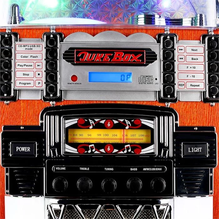 La music box Auna Graceland XXL transforme n’importe quelle pièce en véritable diner américain hyper stylisé. Le design classique du jukebox, typique des golden fifties, ne laisse cependant rien présager des fonctionnalités modernes qui se cachent dans cet appareil.