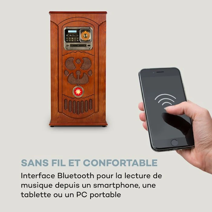- Look rétro très élégant : boîtier au design détaillé avec placage bois élégant