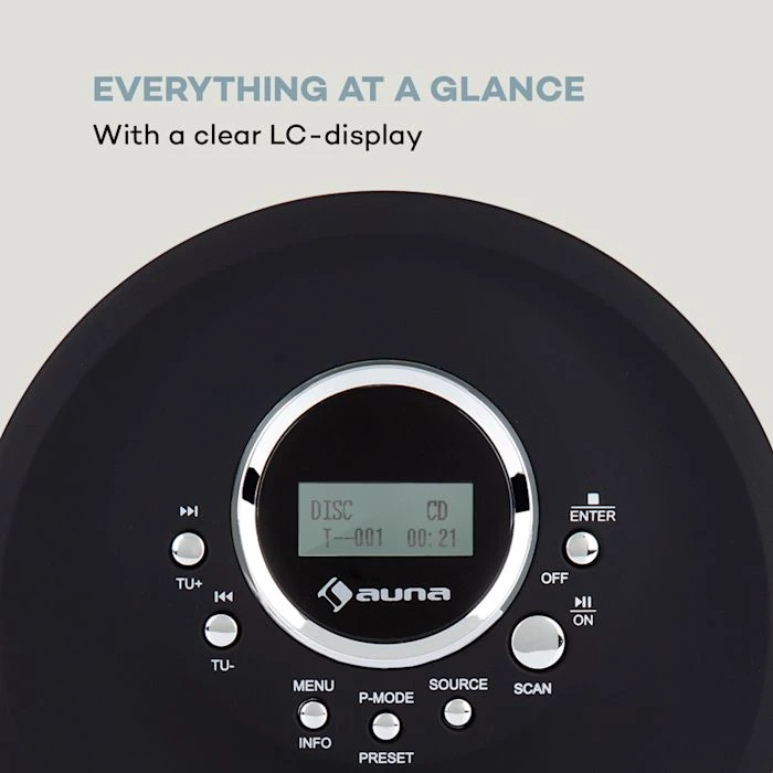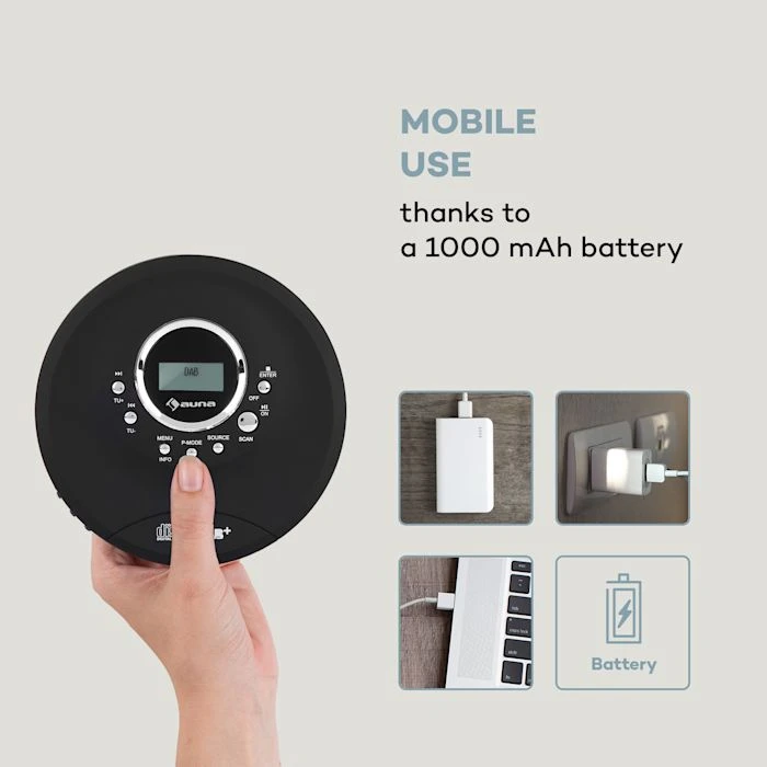 Le meilleur plaisir d’écoute dans un format compact : profitez désormais d’une variété de programmes sans parasite avec le Discman auna CDC 200 DAB + et retrouvez l’utilisation mobile de vos CD favoris.