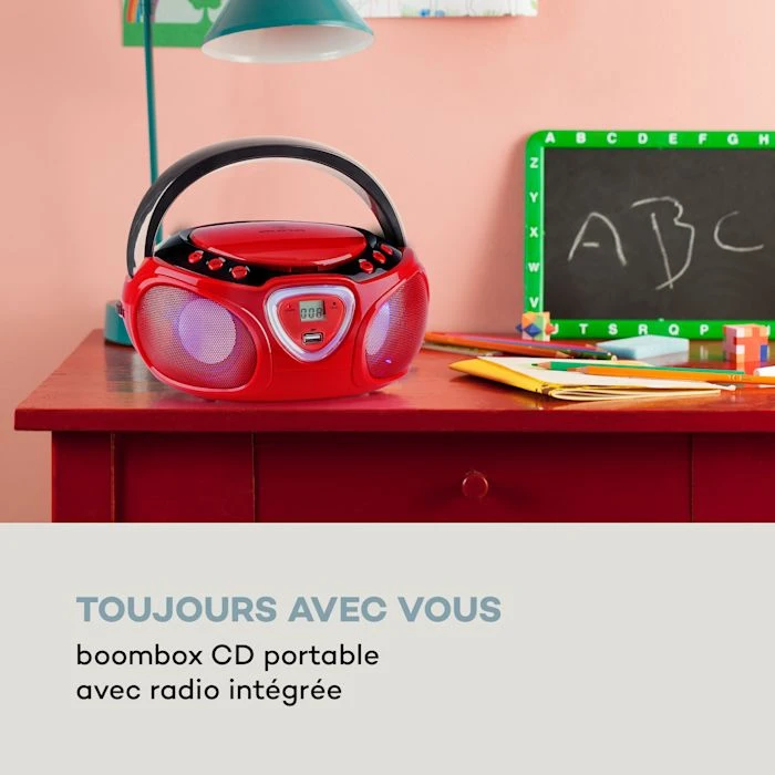• Toujours avec vous : Boombox CD portable avec radio intégrée