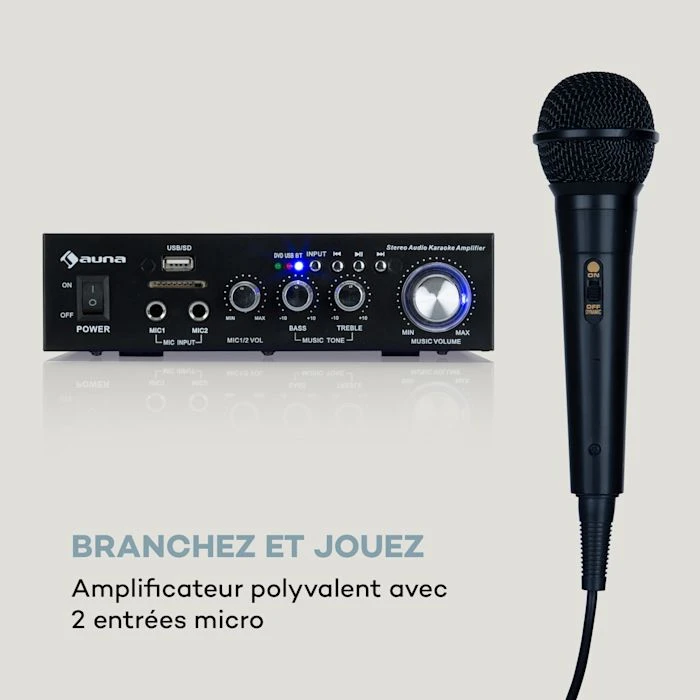 - Branchez et c’est parti : amplificateur polyvalent avec 2 entrées de micros