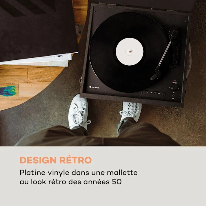 - Design rétro : platine vinyle de format mallette dans le style des années 50