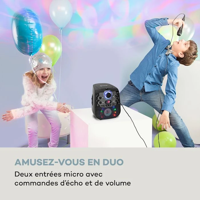 - Amusement en duo : deux entrées micro avec écho et réglage du volume
