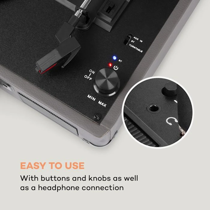 - Design rétro : tourne-disque avec boîtier au style des années 50