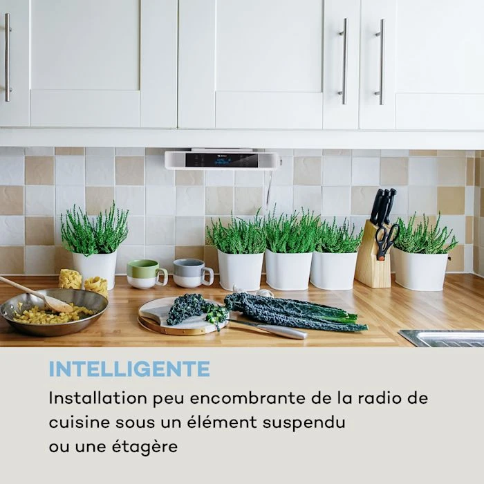 - Intelligente : installation peu encombrante de la radio de cuisine sous un élément suspendu ou une étagère