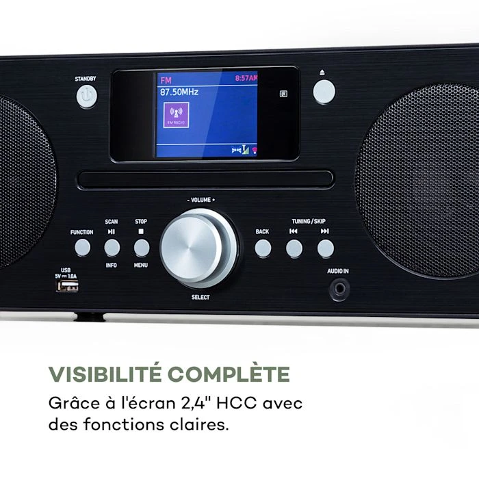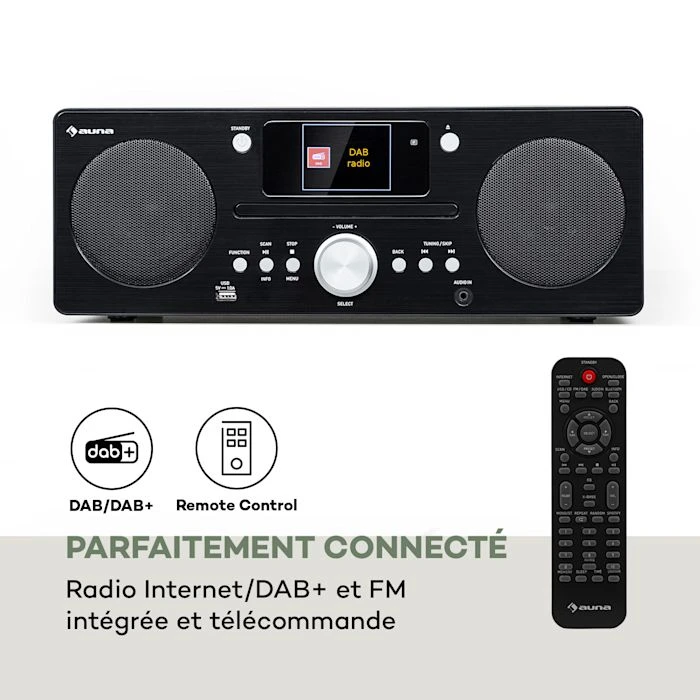 - Parfaitement connecté : Radio Internet/DAB+ et FM intégrée et télécommande