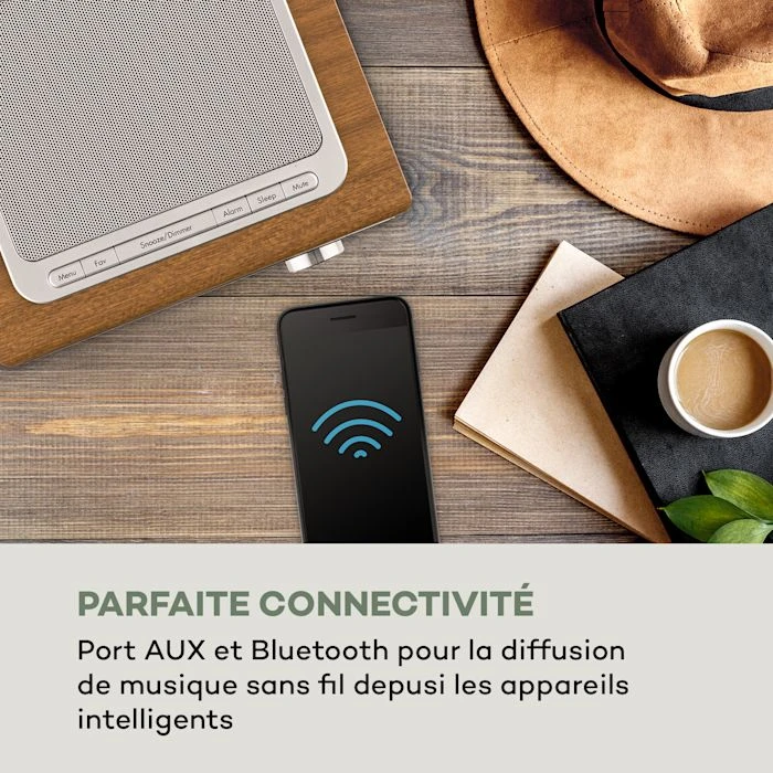 - Parfaitement connecté : prise AUX et Bluetooth pour le streaming sans fil depuis les appareils intelligents