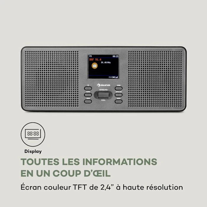 - Son puissant : plaisir d’écoute parfait avec tuner DAB+ et FM local analogique