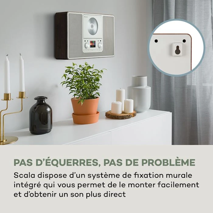 Système complet plat pour table ou mur : la radio Internet auna Scala VCD apporte non seulement de la variété musicale dans la meilleure qualité audio par simple appui sur un bouton, mais vous fournit également un éclairage d’ambiance pour chaque occasion.
