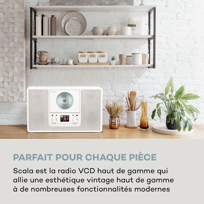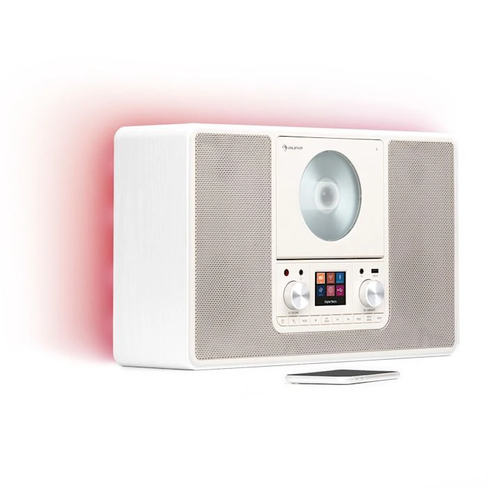 Système complet plat pour table ou mur : la radio numérique auna Scala VCD apporte non seulement de la variété musicale dans la meilleure qualité audio par simple appui sur un bouton, mais vous fournit également un éclairage d’ambiance pour chaque occasion.