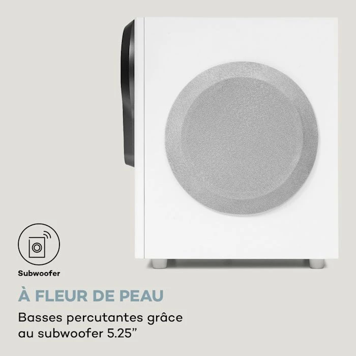 - Sous la peau : des basses puissantes grâce à un subwoofer de 5,25″.
