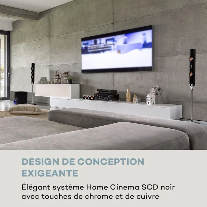 - Design haut de gamme : Système Home Cinema SCD noir élégant avec des touches de chrome et de cuivre
