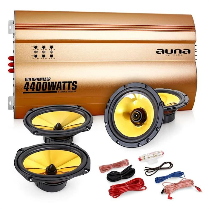 - Amplificateur de voiture 4 canaux doré avec 4400 watts de puissance