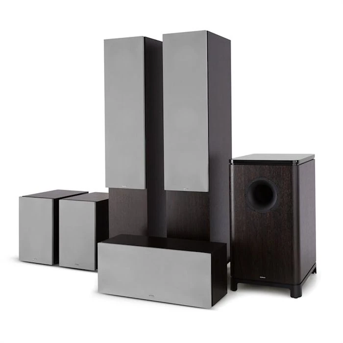 - Subwoofer 16,5 cm (6,5″) avec châssis en fonte et aluminium brossé et magnets en ferrite