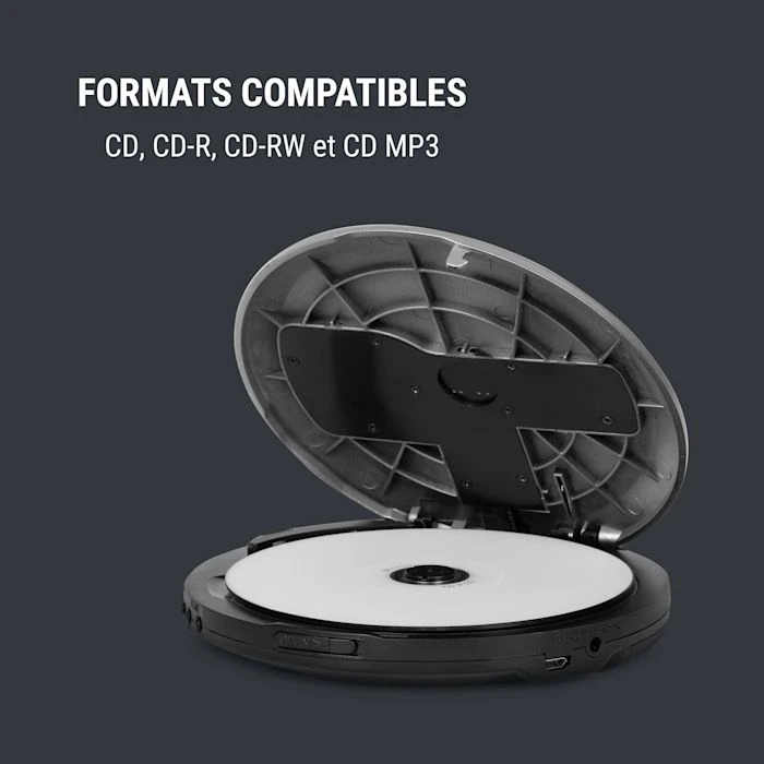 - Formats compatibles : CD, CD-R, CD-RW et CD MP3