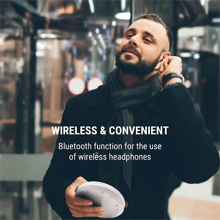 Retour d’une légende : avec le Discman oneConcept CDC 100 BT , c’est le retour du CD en utilisation mobile – complet avec une technologie de pointe ! Grâce à sa fonction Bluetooth, il peut se connecter en un rien de temps à votre casque sans fil et de transmettre de manière fiable les signaux audio des CD, CD-R, CD-RW et CD MP3. Grâce au fonctionnement sur batterie, vous êtes toujours indépendant des sources d’alimentation et pouvez écouter de la musique pendant 8 heures en déplacement. À la maison, il s’utilise facilement avec un adaptateur secteur ou un câble micro USB, simplement branché sur la prise correspondante.