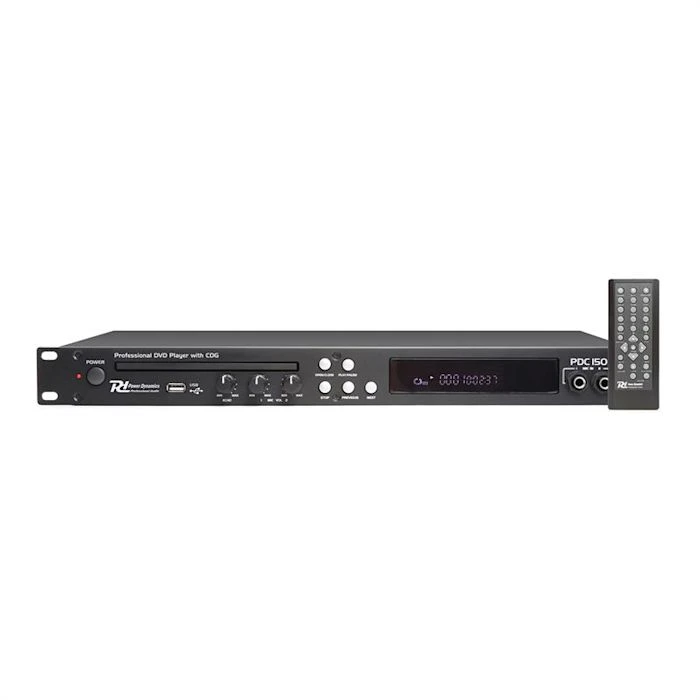 Le Power Dynamics PDC150 19″ est un lecteur CD/DVD facile à connecter et à encastrer qui convient particulièrement au montage en rack étant donné ses dimensions de 19″ (1 HE). Les deux entrées de microphone en façade avec effet écho réglable ainsi que la compatibilité avec les CD+G rendent le PDC150 adapté aux utilisations karaoké.